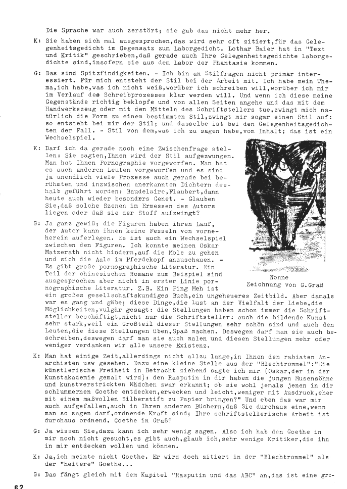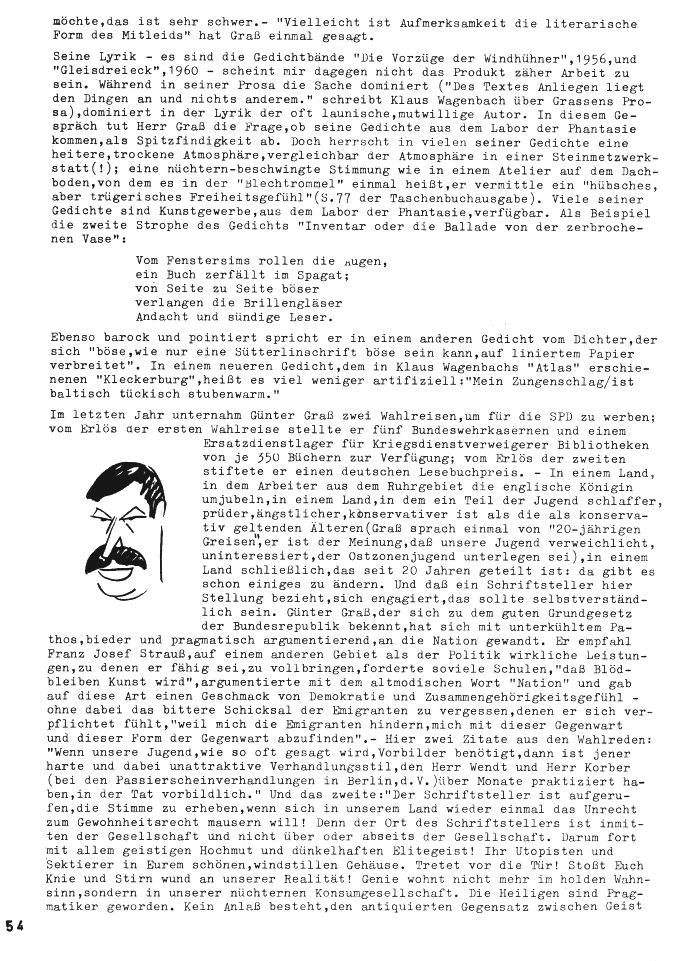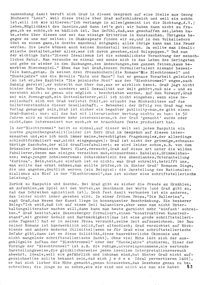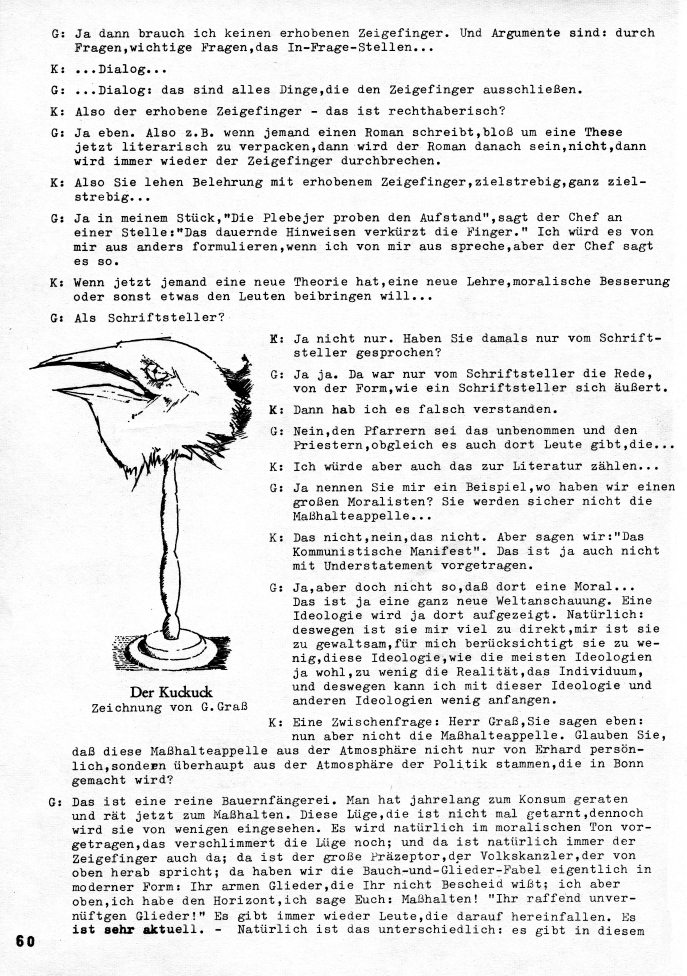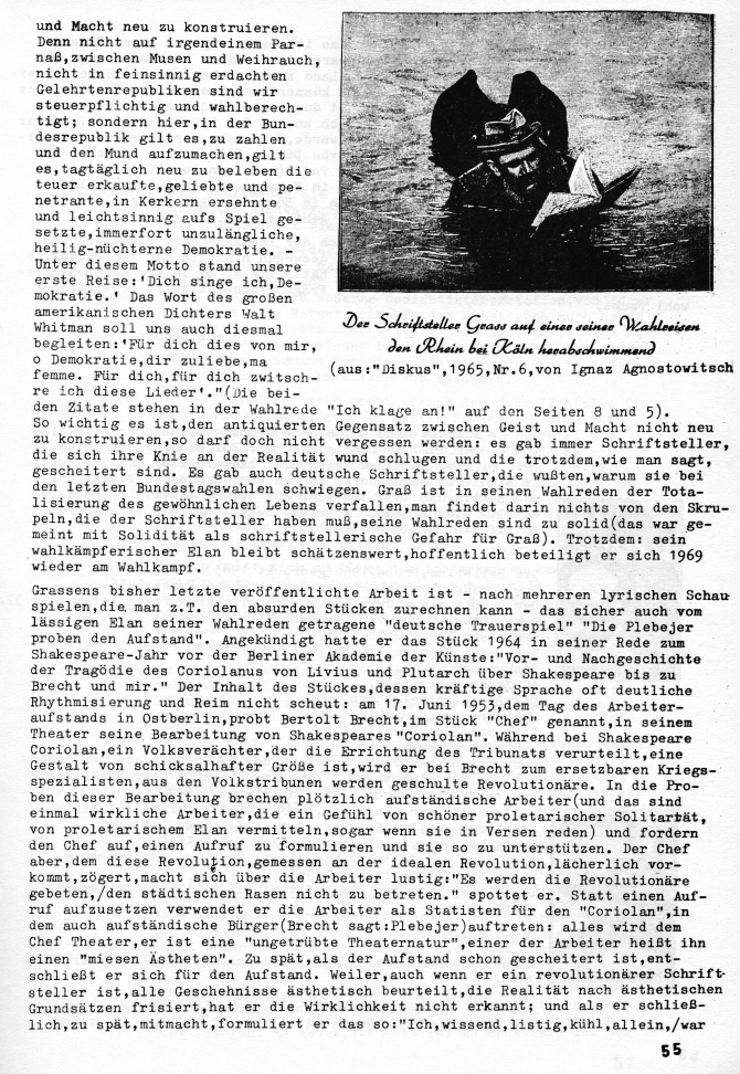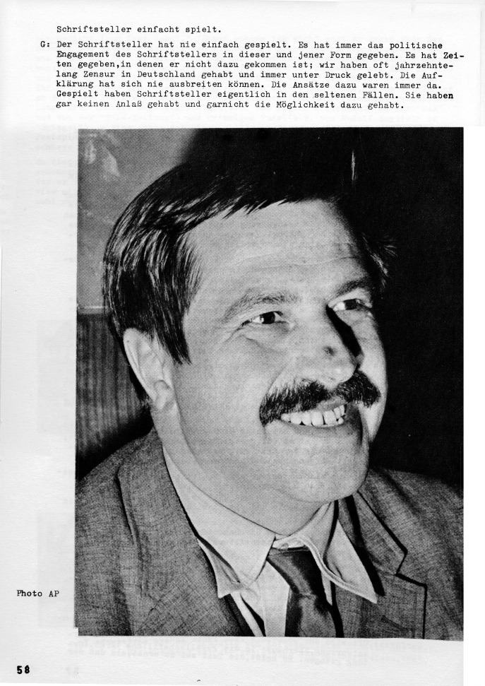 Quelle: Dieter Schiefelbein, Thomas Schmid, Michael Steiner: Gespräch mit Günter Grass. In: Kurfürst 8/9-1966, S. 52-65