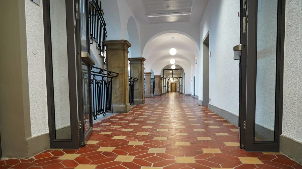 Bensheim. Den Ort, an den die meisten Millionen geflossen sein dürften, sieht man von innen normalerweise nicht. Von außen aber ist das große historische Dach prägend für das gesamte Viertel. Zum Abschluss der Sanierungs- und Modernisierungsarbeiten am Altbau des Alten Kurfürstlichen Gymnasiums führte Schulleiterin Nicola Wölbern durch die neuen, alten Räume und mit besonderer Ehrfurcht bis hinauf unter die enorme Dachfläche, die mit einem neuen hölzernen Dachstuhl und neuen Ziegeln versehen und technisch aufgerüstet wurde.