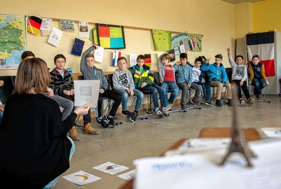 Gespannt lauschten die Schüler den Worten von Fanette Bossuyt, die von Anfang an nur französisch mit den Jugendlichen sprach und so von ihnen deren Aufmerksamkeit und volle Konzentration forderte.