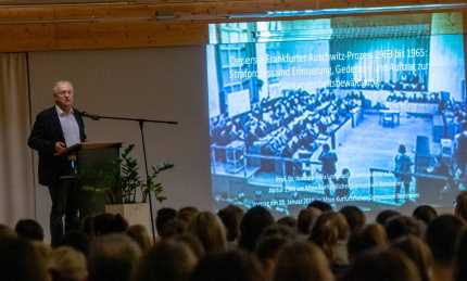 Beim 116. AKG-Forum sorgte Leonhards leise, aber sehr emotionale und aufwühlende Reminiszenz an die Opfer des Nazi-Terrors für gebannte Stille in der dicht besetzten Schulmensa. Präzise schilderte er die starren Mienen der Angeklagten im Gerichtssaal des Gallus Saalbaus, wo insgesamt 22 ehemalige SS- und Gestapo-Mitglieder des Konzentrationslagers Auschwitz jede Form von Verantwortung ablehnten und sich als servile Befehlsempfänger stilisierten, die an der systematischen Ermordung der Gefangenen keinerlei Schuld trügen.