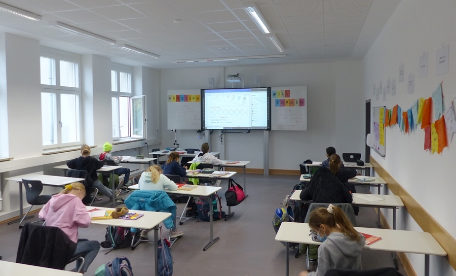 Die Verwaltung befindet sich jetzt wieder in den Räumlichkeiten im 1. Obergeschoss und auch die Lehrerinnen und Lehrer konnten wieder in das Lehrerhaus einziehen. Aber natürlich das Wichtigste: Die neuen Klassenräume sind fertig. Alles ist frisch gestrichen, mit neuem Fußboden, neuem Mobiliar und neuer Technik ausgestattet. In diesem Zuge konnten die 5. Klassen nun wie geplant aus den Containern in das Hauptgebäude umziehen. In jedem Klassenraum steht uns jetzt eine digitale Tafel zur Verfügung und auch ein LAN-Anschluss garantiert für jeden Klassenraum, dass ein Zugang zum Internet möglich ist. Dank der kurzfristigen weiteren Unterstützung durch den Förderverein können wir in jedem Klassenraum eine Dokumentenkamera einsetzen. Gute Startvoraussetzungen für die Zukunft.