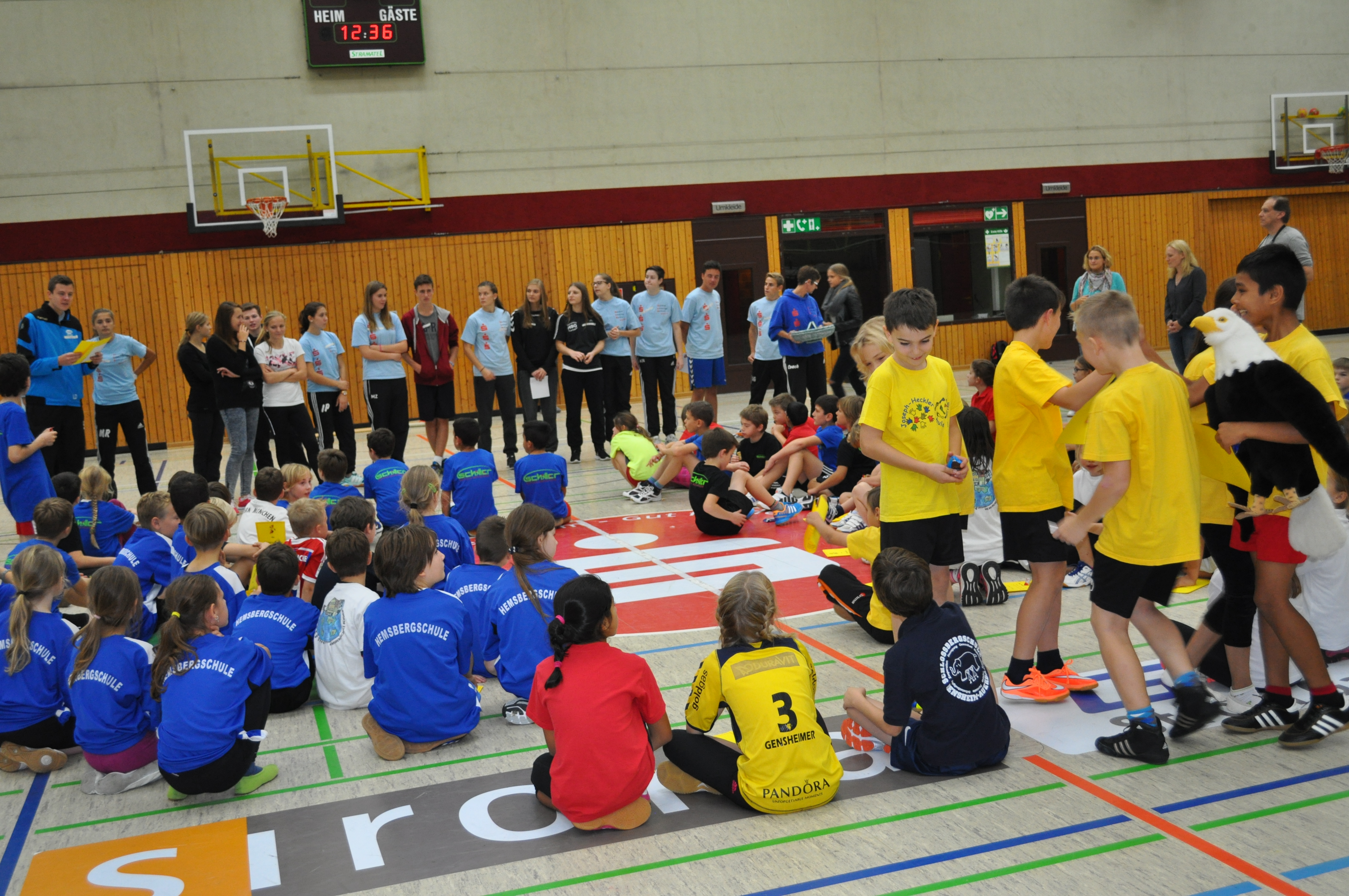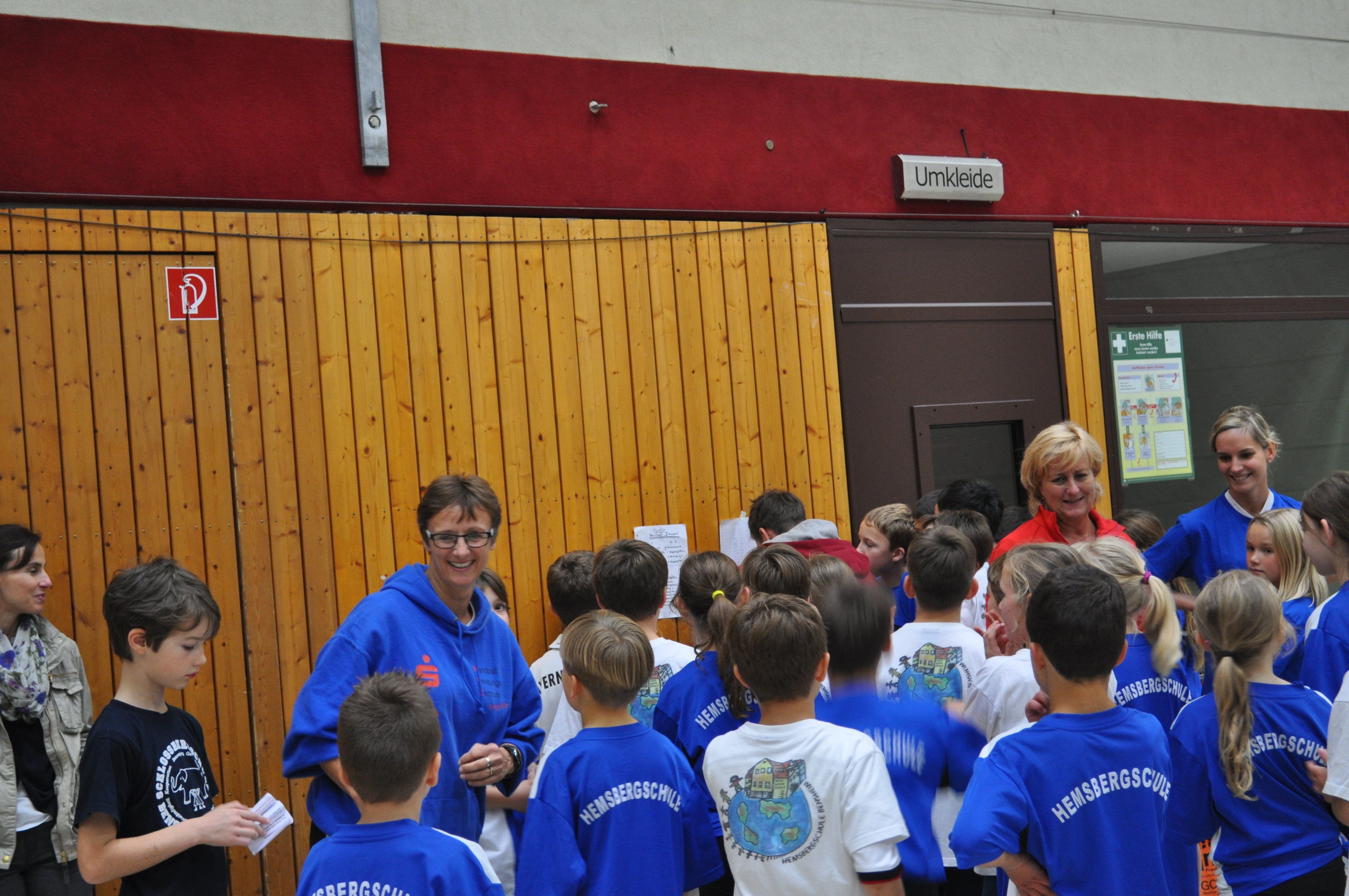 Alle Teilnehmerinnen und Teilnehmer erhielten Urkunden, die Erstplatzierten der verschiedenen Stationen Sonderauszeichnungen. So auch die Hemsbergschule, die beim Handball-Brennball in der Gruppenwertung sowohl den ersten als auch den zweiten Platz einheimste. Dritter wurde die Schillerschule. Im Koordinationsparcours bewies die Hecklerschule das größte Geschick.