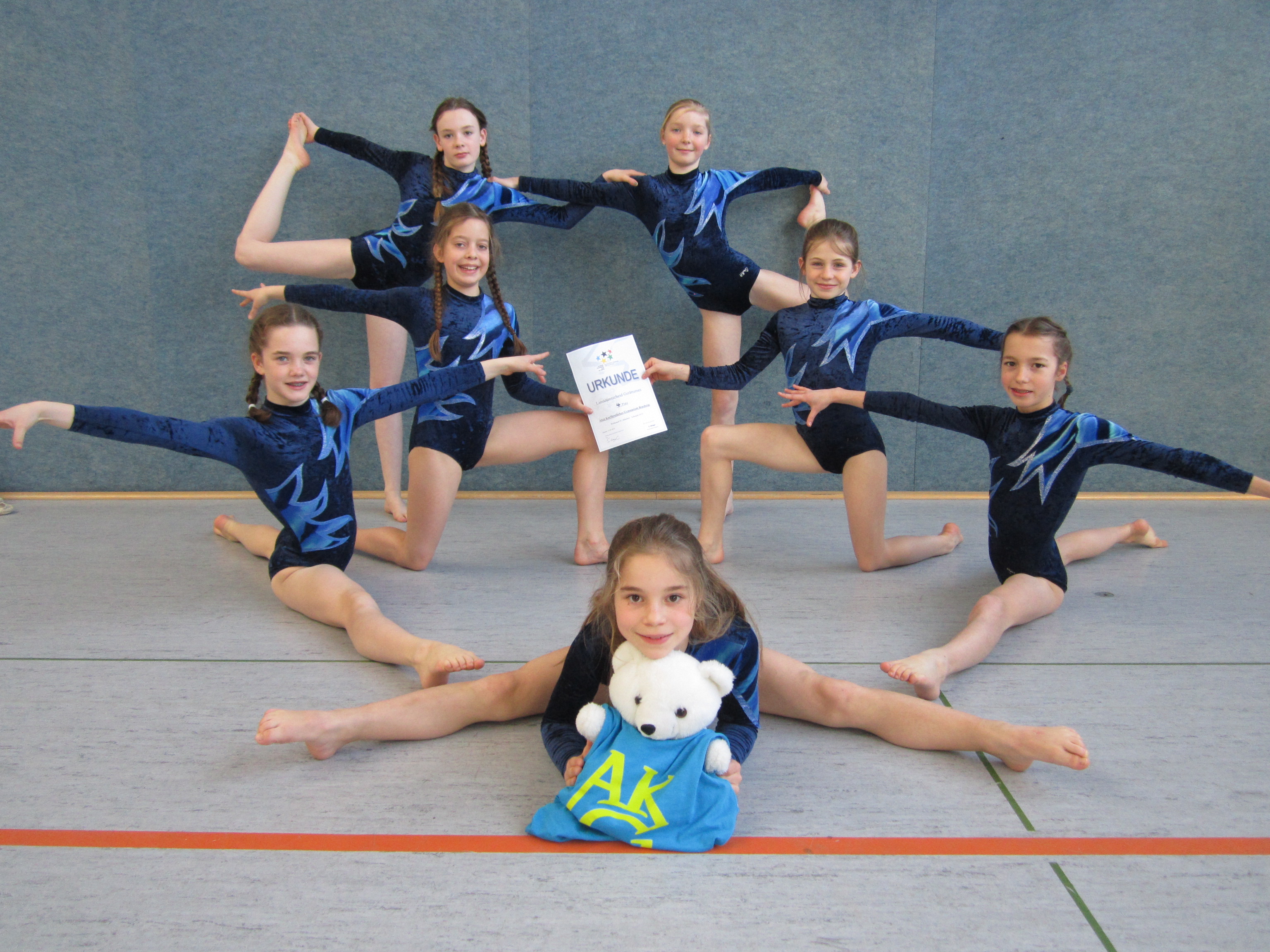 Im Wettkampf der Turnerinnen vertraten Laura Gülzow, Clara Jakobi, Anna Röß, Viktoria Köbe, Sophie Bechtel, Victoria Heil (Ersatz) und Jule Vogel (Ersatz) das AKG Bensheim.