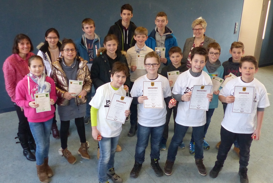 Wie bereits berichtet gab es auch in diesem Jahr in den Klassen 5 bis 12 einen großen Zuspruch beim Mathematik-Team-Wettbewerb "Bolyai". Die besonders erfolgreichen Gruppen des AKG erhielten jetzt Urkunden und kleine Preise als Anerkennugn ihrer Leistungen.