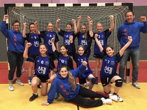 Beim Landesentscheid erfolgreiche AKG-Handballerinnen in der Wettkampfklasse IV