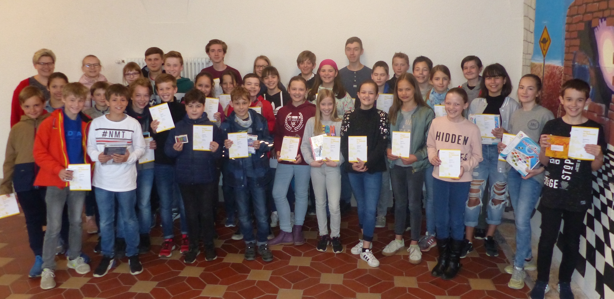 Nach der Auswertung durch den Veranstalter können sich einige besonders erfolgreiche Teilnehmer über Sonderpreise freuen, die in drei Kategorien ausgelobt werden und von Kartenspielen, Büchern und Puzzeln bis hin zu anspruchsvollen Strategiespielen reichen. Die Preisträger erhielten ihre Urkunden und Preise bei einer Siegerehrung durch die Schulleiterin Frau Wölbern, die den Schülern zu ihren hervorragenden Leistungen gratulierte.