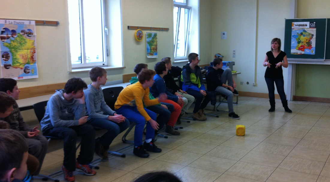 Hélène Bari, die Lektorin des Institut Français aus Mainz, verbrachte im Rahmen des Programmes FranceMobil mit unseren Schülern einen spielerischen Vormittag in französischer Sprache.