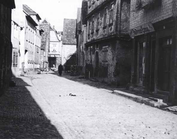 Das zweite Haus von rechts: Die "Alte Synagoge" in der Hintergasse 14. Es diente nach dem Bau der "Neuen Synagoge" als jüdisches Gemeindehaus. Nach 1941 wurden hier die noch in Bensheim lebenden Juden zwangsweise untergebracht, später von hier aus deportiert. (Foto: Stadtarchiv Bensheim)