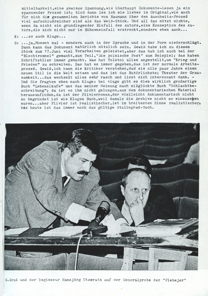 Quelle: Dieter Schiefelbein, Thomas Schmid, Michael Steiner: Gespräch mit Günter Grass. In: Kurfürst 8/9-1966, S. 52-65