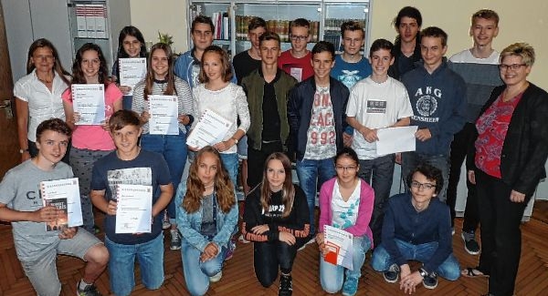 Die Lateiner mussten sich in diesem Jahr dem Thema „Rom und Griechenland“ stellen. Ausgezeichnet wurde Cosima Donié aus der Jahrgangsstufe 10, die einen zweiten Platz errang und zur Landes-Siegerehrung nach Hünfeld fahren durfte. Außerdem erhielt Mika Hoffmann (8a) einen dritten Preis, und für Lars Mosis (8a) und Niklas Dietz (9a) gab es einen Anerkennungspreis. Die Teilnehmer im Fach Englisch setzten sich mit dem Thema „Irland“ auseinander.