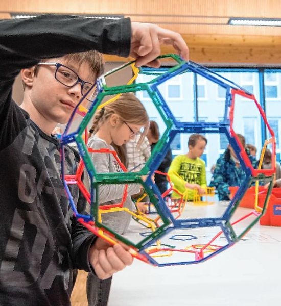 Auch Eltern hatten Spaß an Herausforderungen wie der Leonardo-Brücke, an platonischen Körpern oder konvexen Deltaedern. Nicht selten erklärten die Kleinen den Großen, wie es funktioniert. Nach der Aufteilung der Teilnehmer auf die Klassenräume hatten die Kinder vierzig Minuten Zeit, um zwölf mehr oder weniger knifflige Aufgaben zu lösen. Dabei ging es neben der Anwendung der Grundrechenarten auch um geometrische Körper und räumliches Denken. Ziel ist ein kreativer und spielerischer Umgang mit dem Schulstoff der letzten vier Jahre. Gefragt waren logisches Denken, das Erkennen von Zusammenhängen und nicht zuletzt Durchhaltevermögen. Alles Kompetenzen, die auch für andere Bereiche von Bedeutung sind.