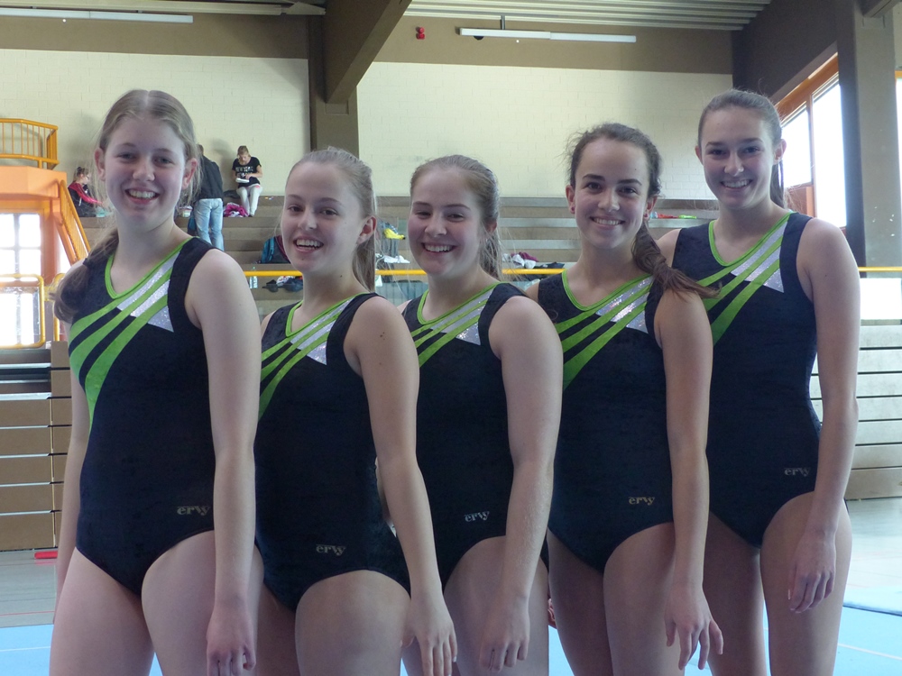 Ohne Druck geschah dann jedoch das kleine „Wunder“! Die Mannschaft gewann die Gerätewertungen am Schwebebalken (47,15 Pkt.) und am Stufenbarren (46,5 Pkt.), am Sprung wurde sie mit 44,65 Punkten Zweiter. Erst am letzten Gerät ging dann die Kraft aus und die Turnerinnen belegten hier mit 44,6 Punkten nur Platz fünf. Im Gesamtklassement wurde die Mannschaft, mit nur 0,5 Punkten Rückstand auf Platz eins, hessischer Vizemeister und erturnte sich dabei 182,90 Punkte. In der inoffiziellen Einzelwertung belegte Carlotta Steffens mit 47,40 Punkten einen hervorragenden zweiten Platz.