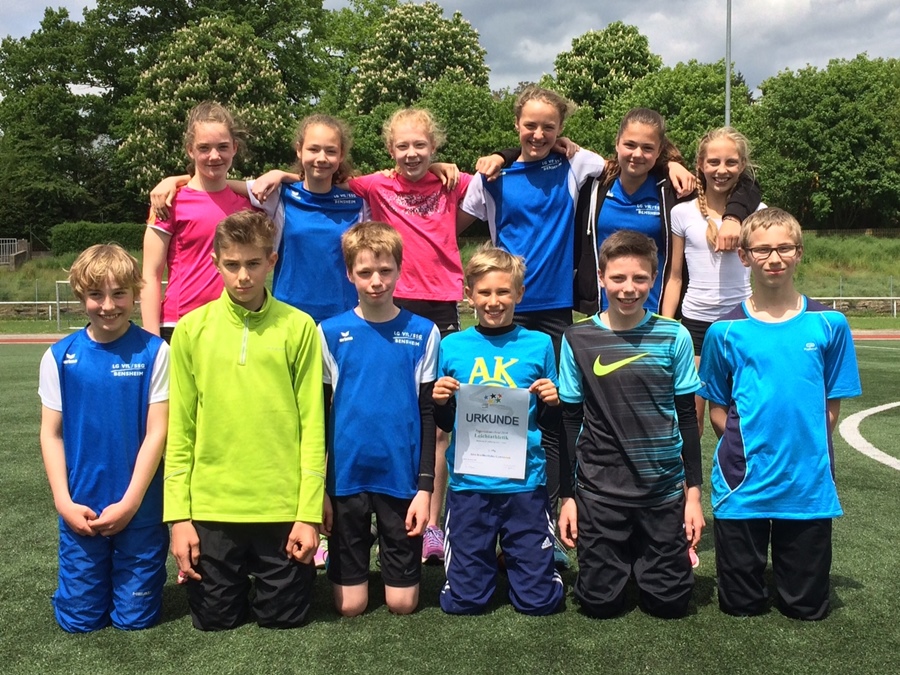 Fünf Disziplinen müssen bei diesem Team-Wettbewerb von allen Mannschafts-Mitgliedern absolviert werden. In der Pendel-Hürden-Staffel, beim Heulball-Wurf sowie im Weitsprung gelang der von Lehrertrainer Markus Forster und Sportlehrerin Ines Harjes betreuten Mannschaft jeweils souverän der Disziplinsieg. Im 50-Meter-Sprint und beim abschließenden 10-Minuten-Lauf belegte man jeweils den zweiten Platz. Dies brachte am Ende sieben Ranglistenpunkte und den Regionalsieg vor dem Schuldorf Bergstraße (elf Ranglistenpunkte). Aus einer geschlossenen Mannschaftsleistung ragte Nico Gelbarth mit 5,05 Meter im Weitsprung sowie 45 Meter mit dem Heulball heraus. Mit diesem Erfolg hat sich das AKG-Team für den Landesentscheid qualifiziert, der Anfang Juli in Wetzlar stattfinden wird.