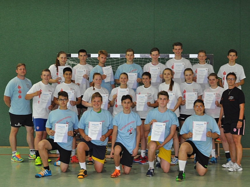 Am ersten Tag standen Themen wie die Aufsichtspflicht, Sicherheit und Erste Hilfe, aber auch die Vermittlung von Bewegung und Sportart sowie Kleine Spiele auf dem Plan. Am nächsten Lehrgangstag nahm die „Heidelberger Ballschule“ mit ihrem wissenschaftlichen Hintergrund in der Grundlagenausbildung von Kindern großen Raum ein. Am dritten Tag ging es vermehrt ins Detail der Trainingsarbeit für den Handball, vom Spielen und Üben der Manndeckung über Techniktraining bis hin zur Einführung verschiedener vereinfachter und damit kindgerechter Spielformen. Den Abschlusstag bildete ein Blick auf das Motorik-Training und den Einsatz von verschiedenen Materialien im Sportunterricht und Pausensport. Schließlich ist die „bewegte Pause“ eine der Einsatzmöglichkeiten der Schülermentoren. Am Ende stand noch ein kleines Spielfest auf dem Plan, das die neuen Schülermentoren selbst organisiert haben. „Alle waren mit großem Eifer dabei und haben ihre Sache richtig gut gemacht“, lobte Claudia Richter bei der Verleihung der Zertifikate. „Wir haben hier wieder einige Multiplikatoren für unsere Sportart ausgebildet. Jetzt liegt es auch an den Vereinen und Schulen, sie in ihre Abläufe einzubauen und ihr Wissen und Können zu nutzen.“ Für das Handball-Leistungszentrum werden die neuen Schülermentoren bald schon im Einsatz sein: Anfang November veranstaltet das HLZ wieder sein Ballspielfest für Grundschulen, bei dem traditionell die Schülermentoren in die Organisation und den Ablauf eingebunden sind.