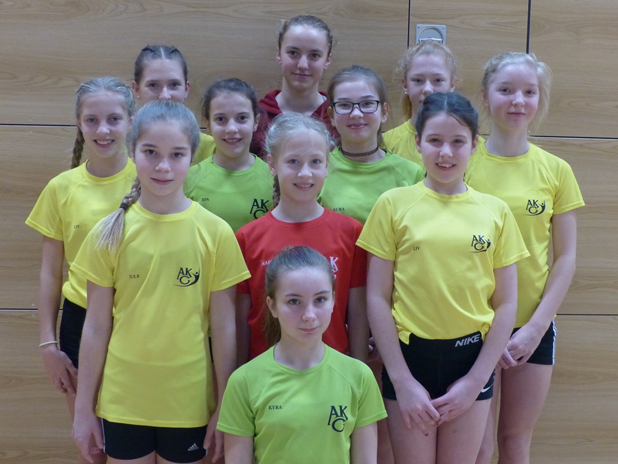 Im WK IV (Jg. 2004 und jünger) ist die Jungenmannschaft mit Finn Wiebe, Moritz Stoiber, Gianluca Belac, Vincent und Maximilian Stoiber mangels Masse direkt für den Landesentscheid qualifiziert. Bei den Mädchen sah das anders aus. Neun Mannschaften traten zum Regionalentscheid in Wiesbaden an. Das AKG konnte hier sogar auf zwei Mannschaften zurückgreifen. Die Mannschaft AKG II mit Liv-Grete Hartmann, Liv Schmidt-Ocker, Marlene Wilker, Jule Vogel, Laura Baumgärtner und Ksenia Bondareva konnte die Sonderprüfungen (Standweitsprung, Staffel, Stangenklettern) für sich entscheiden, war beim Synchronturnen zweitbeste Mannschaft, hatte aber Schwächen auf den Gerätebahnen. Im Endklassement belegte die Mannschaft den undankbaren vierten Platz. Auf das Treppchen ganz nach oben (Platz 1) durften die Turnerinnen der Mannschaft AKG I: Sophie Bechtel, Hanna Röper, Kyra Seime, Ida Vötterl und Marilena Seng. Die jungen Damen konnten nicht nur das Synchronturnen für sich entscheiden, sondern gefielen den Kampfrichtern auch an den Gerätebahnen. Damit ist die Mannschaft - gemeinsam mit den Jungen - für das Landesfinale am 29.03. in Kassel qualifiziert.