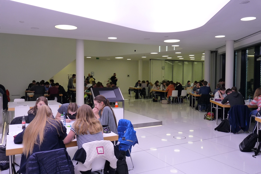 An elf verschiedenen Standorten knobelten beim Tag der Mathematik 2017 zeitgleich mehr als 1200 Schülerinnen und Schüler der Jahrgangsstufe Q2 an kniffligen Aufgaben aus verschiedenen Bereichen der Mathematik. Für den Raum Südhessen hatte das veranstaltende Zentrum für Mathematik (ZFM) die Firma Dentsply Sirona in Bensheim als Gastgeber gewinnen können.