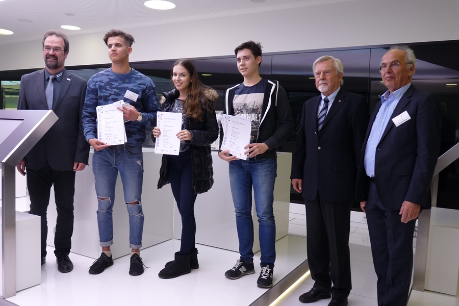Dank der Arbeit eines Korrekturausschusses, der die Schülerarbeiten der einzelnen Stufen jeweils direkt im Anschluss auswertete, konnte gleich zum Abschluss der Veranstaltung die Siegerehrung stattfinden: Michael Meyer, stellv. Vorstandssprecher des ZFM, überreichte zusammen mit Stadtrat Joachim Uhde als Vertreter der Stadt Bensheim sowie Reinhard Pfeifer von Sirona die Preise und Urkunden an die Bestplatzierten.
