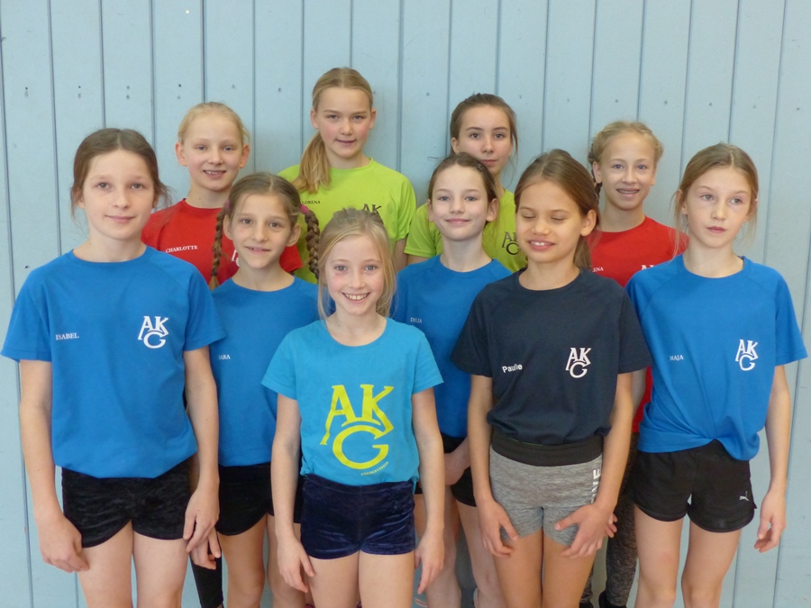 Zwei AKG-Mannschaften traten zum Wettkampf gegen sechs andere Schulen an, wobei in dieser Altersklasse neben dem Turnen auch Standweitsprung, Staffellauf und Seilklettern abgeprüft werden. Kyra Seime, Charlotte Keller, Marilena Seng, Delia Hügel und Isabel Häusler, alle aus den Sportklassen 5-7 am AKG, konnten ihre Überlegenheit gekonnt in Szene setzen und gewannen den Wettkampf überlegen vor der Main-Taunus-Schule aus Hofheim. Sie sind damit qualifiziert für den Landesentscheid am 28.2.18 in Kassel. Die zweite Mannschaft mit Mara Fritz, Maja Möller, Pauline Ernst, Carolin Arndt und Lorena Rosenkranz musste kurzfristig einen Ausfall verkraften und kam trotzdem noch auf einen guten vierten Platz.