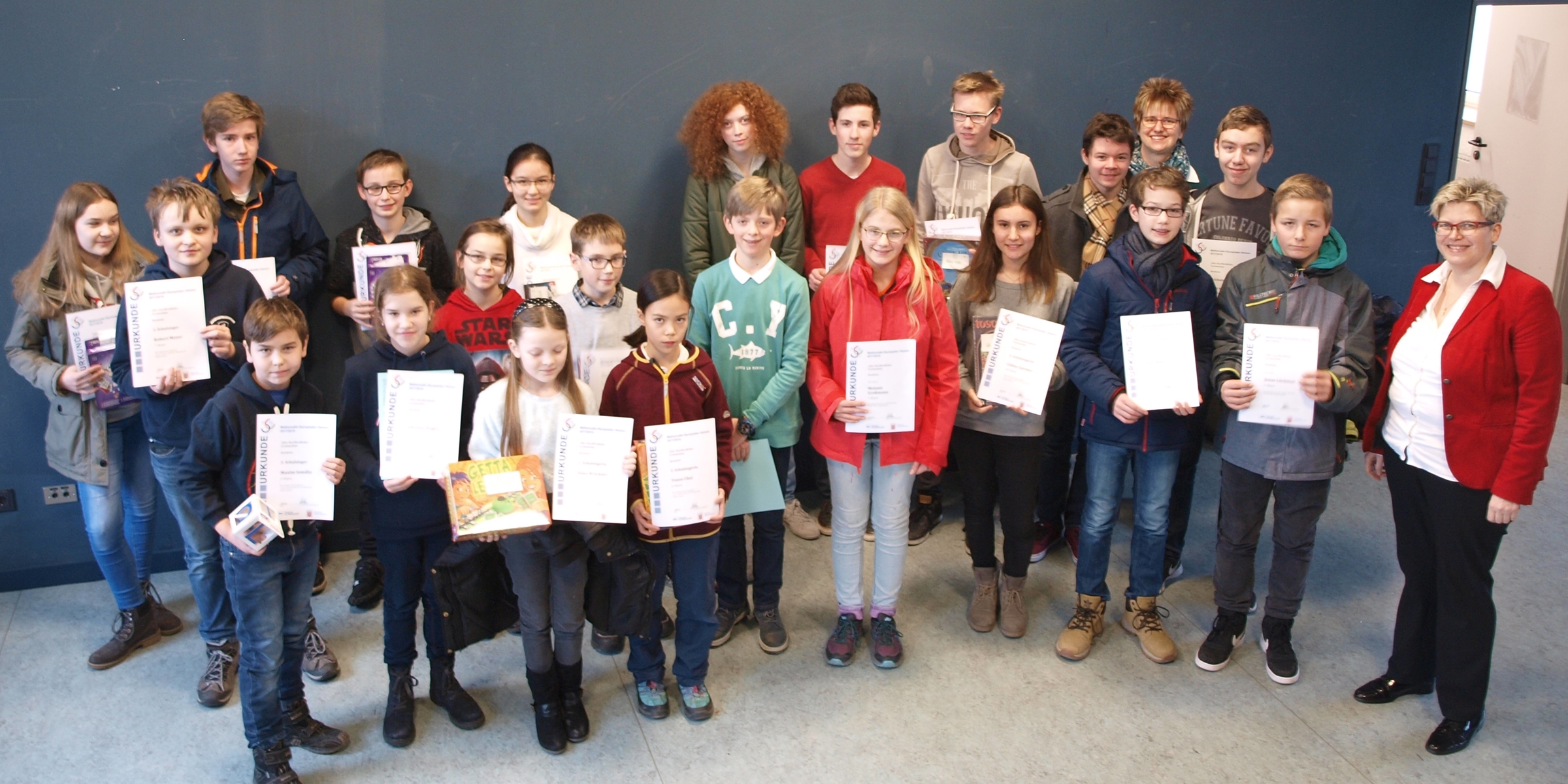 Bei der Siegerehrung am 18. Januar gratulierte Frau Wölbern allen erfolgreichen Teilnehmern, lobte ihre Leistungen und überreichte ihnen Urkunden. Besonders erfolgreiche Teilnehmer erhielten überdies Preise.