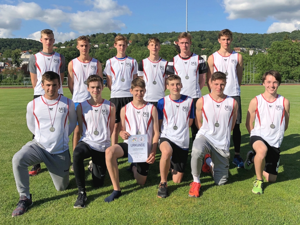 Die AKG-Leichtathletik-Schulmannschaft der Wettkampfklasse II der Jungen (Jahrgänge 2002 bis 2004) hat beim Landesentscheid „Jugend trainiert für Olympia“ hinter der Eliteschule des Sports aus Frankfurt, der Carl-von-Weinberg-Schule, die Silbermedaille gewonnen.