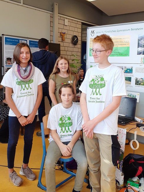 Mit unserem Info-Stand informierten wir über einige unserer Maßnahmen zum Klimaschutz, zum Beispiel die Teilnahme und das sehr gute Abschneiden des AKG beim Schulradeln. Oder das Engagement der Klimabotschafter, die in fünften und sechsten Klassen Vorträge über Klimawandel gehalten hatten. Schülerinnen und Schüler, die sich neu zu Klimabotschaftern ausbilden lassen wollten und sich zur Akademie der Organisation „Plant forthe Planet“ in Ludwigshafen angemeldet hatten, starteten mit Frau Dönicke als AKG-Gruppe dorthin gemeinsam vom Bensheimer Bahnhof aus.