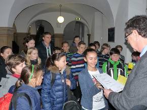 An der 2. Runde der deutschlandweit ausgetragenen Mathematik-Olympiade nahmen dieses Jahr 38 Schülerinnen und Schüler des AKG teil. Nachdem sie bereits den Hausaufgabenwettbewerb erfolgreich absolviert hatten, schrieben sie im November in der 2. Runde eine vierstündige Wettbewerbsklausur. Bei der heutigen Siegerehrung gratulierte Herr Wecht allen erfolgreichen Teilnehmern, lobte ihre Leistungen und überreichte ihnen Urkunden. Die ersten Schulsieger jeder Jahrgangsstufe erhielten außerdem kleine Preise.