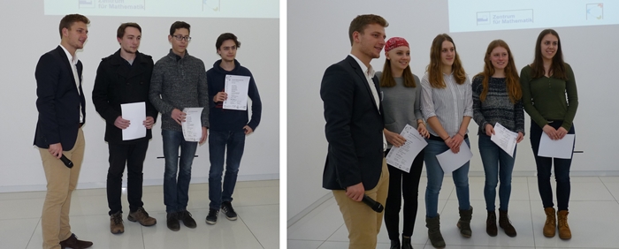 Da ein Korrekturausschuss im Hintergrund bereits während des Wettbewerbs an der Arbeit ist, können noch am selben Tag die Sieger nominiert werden. Die Wartezeit bis zum Abschluss der Auswertung wird mit mathematischen Vorträgen für die Schülerinnen und Schüler überbrückt. Auch für die begleitenden Lehrerinnen und Lehrer wird ein Rahmenprogramm mit Vorträgen, Fortbildungen u.a. angeboten. Den Abschluss der Veranstaltung bildet die Siegerehrung. Hier werden die Besten in der Einzel- bzw. Gruppenwertung mit Urkunden und Preisen belohnt. Die Sieger eines Standortes erhalten ein Stipendium für eine Mathematik-Modellierungswoche am Zentrum für Mathematik.